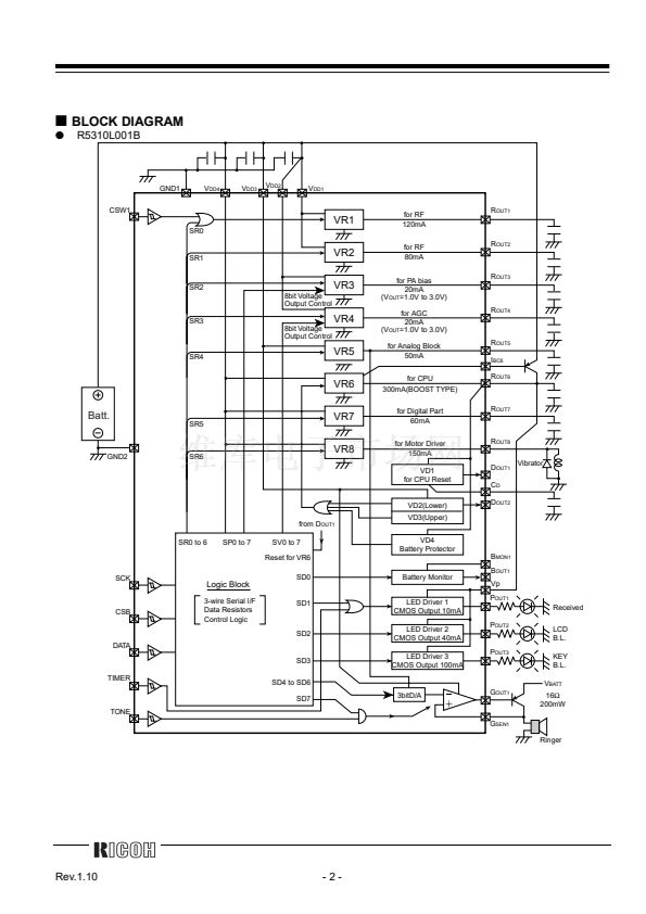 The R5310L Series are Multi LDO regulators for power management of cellular phones. All of regulators are low noise and