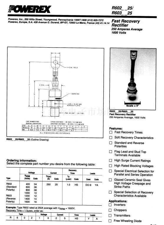 Fast Recovery Rectifier (250 Amperes Average 1600 Volts)