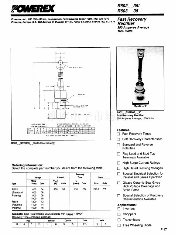 Fast Recovery Rectifier (350Amperes Average 1600 Volts)
