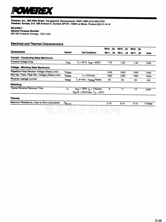 General Purpose Rectifier (200-300 Amperes Average 1200 Volt...