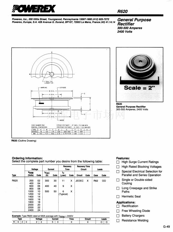 General Purpose Rectifier (300-500 Amperes Average 2400 Volt...