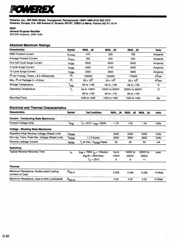 General Purpose Rectifier (300-500 Amperes Average 2400 Volt...