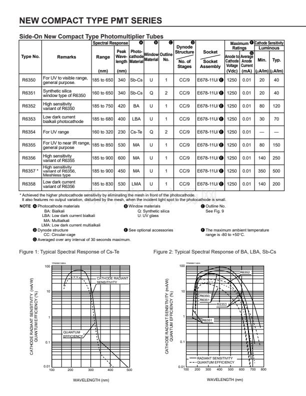 compact PMT having over 100mA/W photocathode radiant sensitiv-