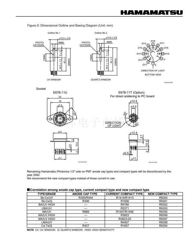 an improved line of compact side-on PMTs. The X-axis anode uni-