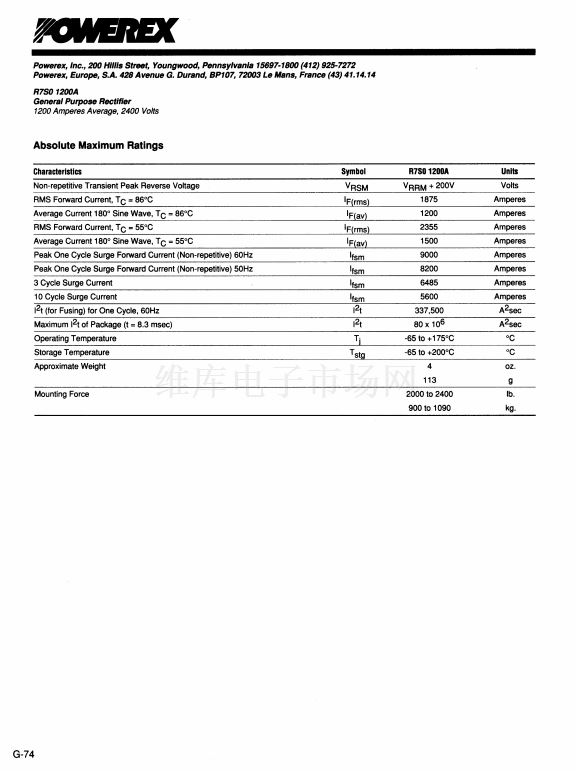 General Purpose Rectifier (1200 Amperes Average 2400 Volts)