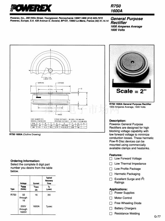 General Purpose Rectifier (1600 Amperes Average 1600 Volts)