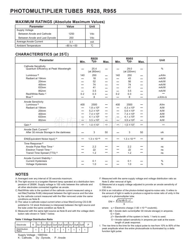 sponse from UV to near infrared. The R928 employs a UV glass