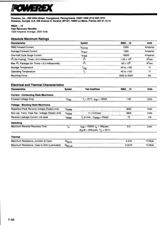 Fast Recovery Rectifier (1500 Amperes Average 3600 Volts)