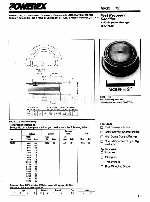 • Fast Recovery Rectifier (1200Amperes Average 3600 Volts)