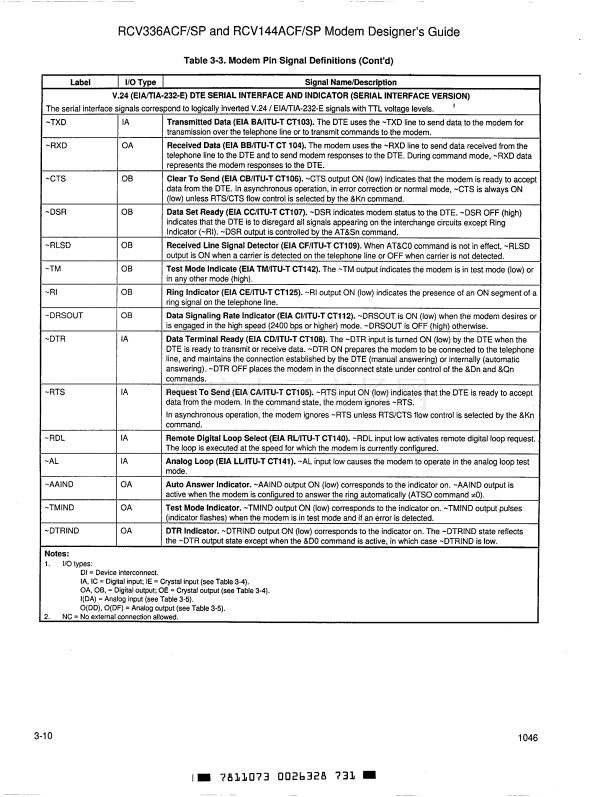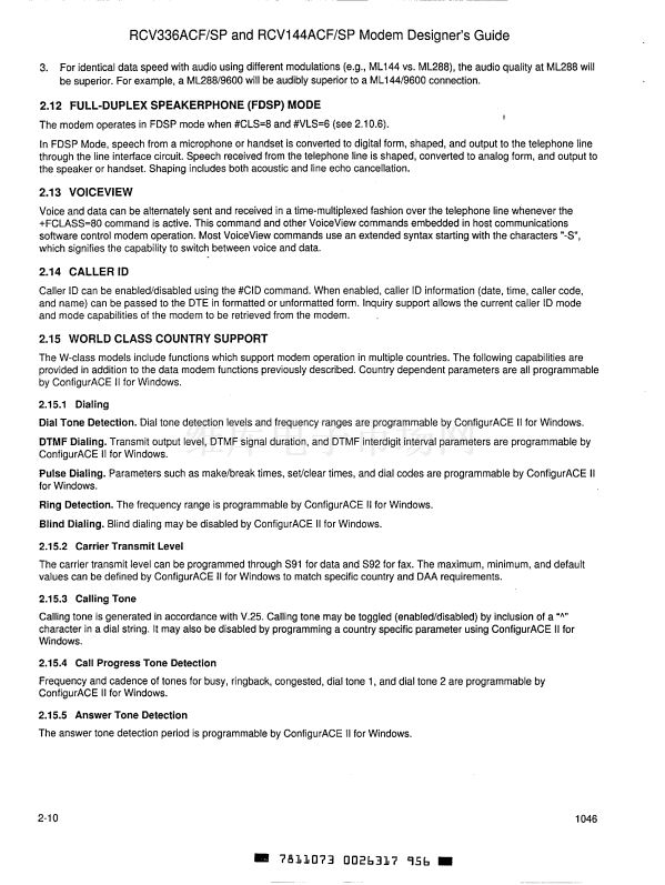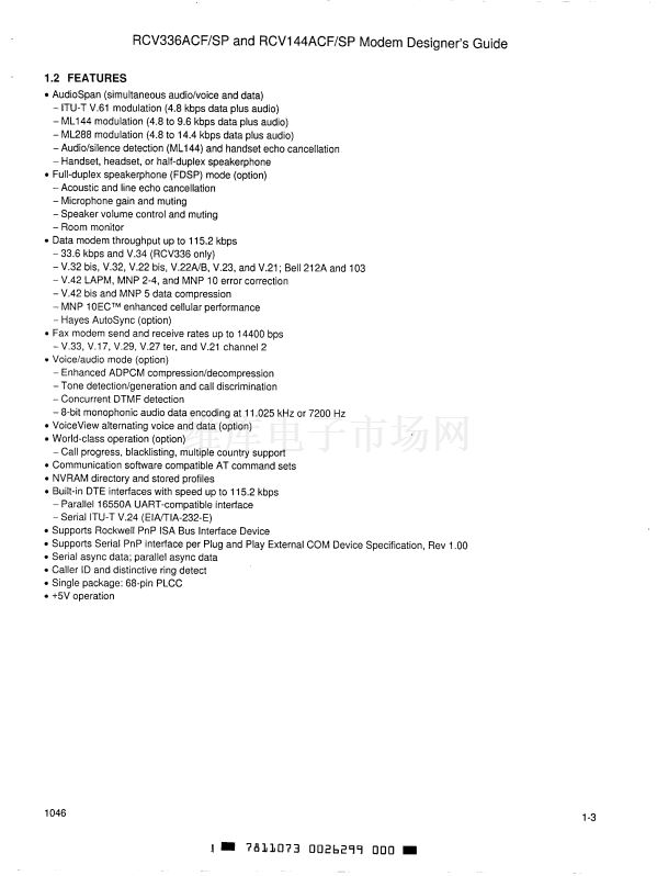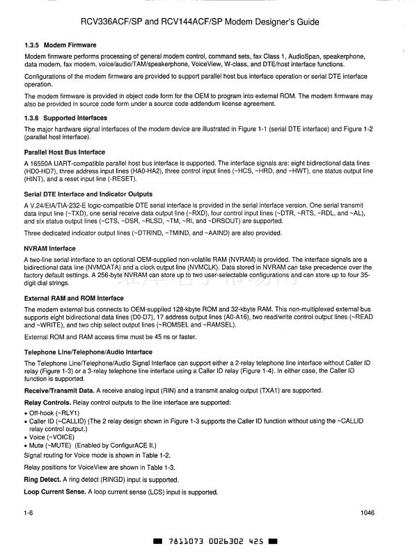 RCV336ACF/SP and RCV144ACF/SP Modem Device