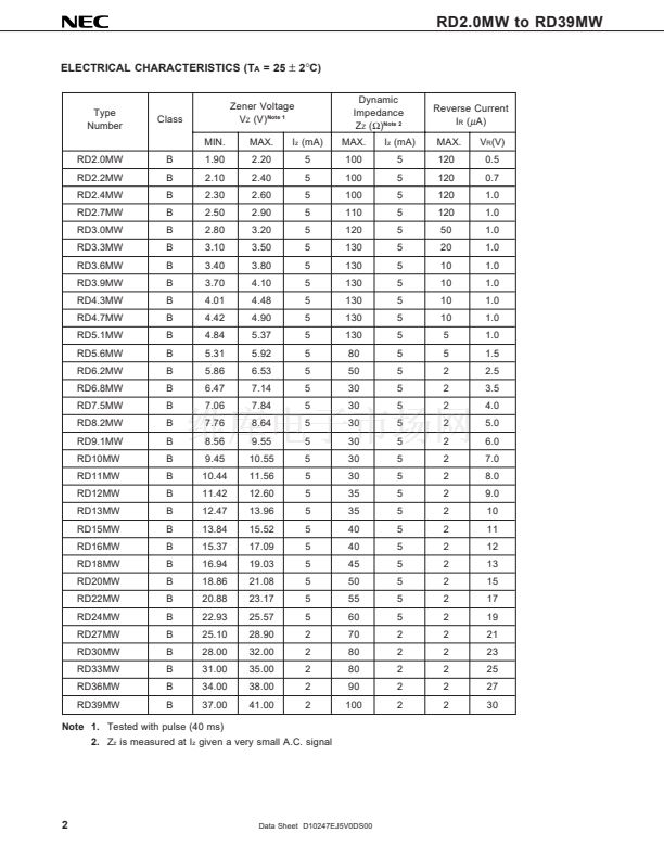 Type RD2.0MW to RD39MW Series are 3-PIN Mini Mold Package