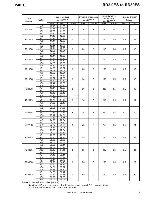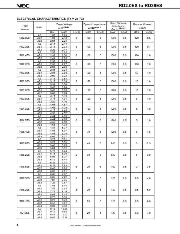 NEC Type RD2.0ES to RD39ES Series are planar type diodes into DO-34