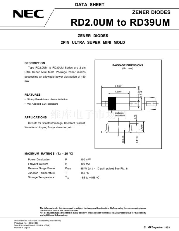 Ultra Super Mini Mold Package zener diodes