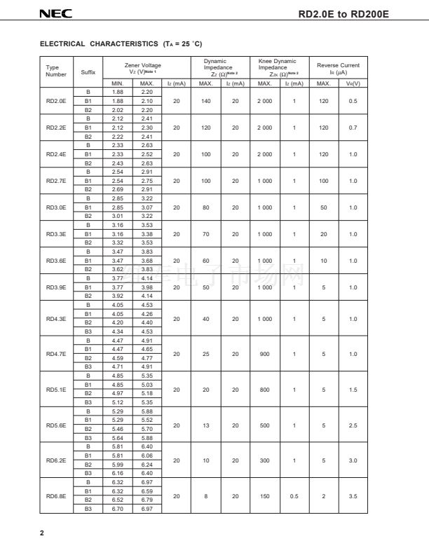 NEC Type RD2.0E to RD200E Series are planar type zener diode in the