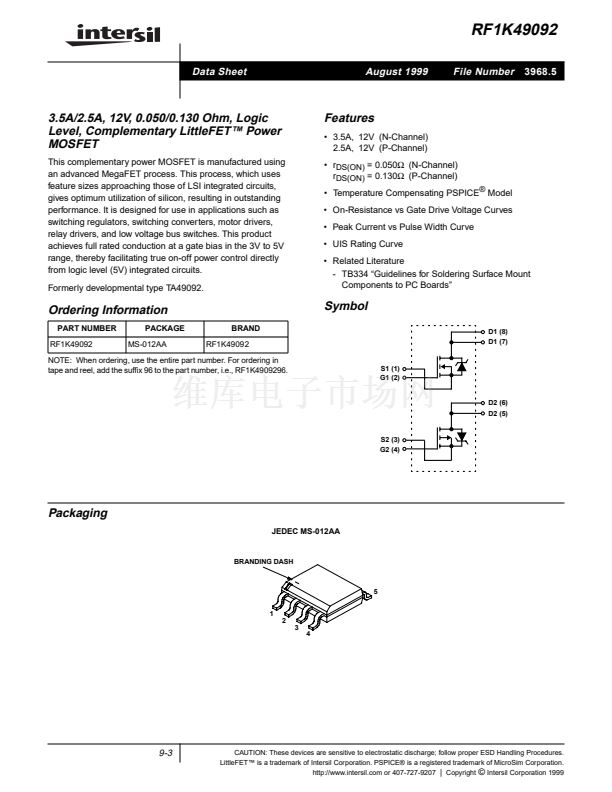 LittleFET鈩?is a trademark of Intersil Corporation. PSPICE廬 is a registered trademark of MicroSim Corporation.