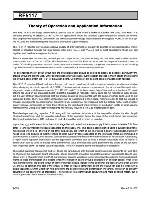 ground. The RF5117 is designed to maintain linearity