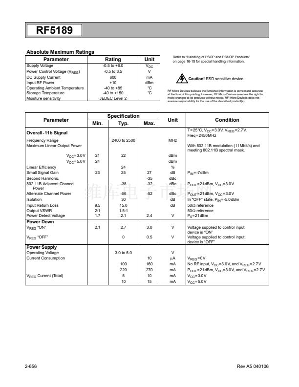 range of supply voltage and power output. The RF5189 is