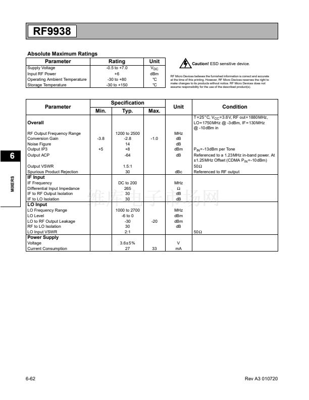 The RF9938 is a complete upconverter designed for PCS