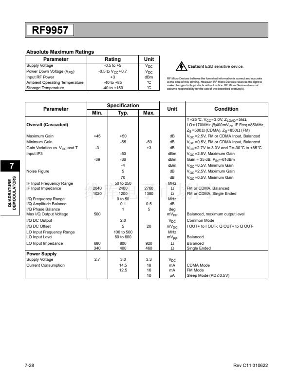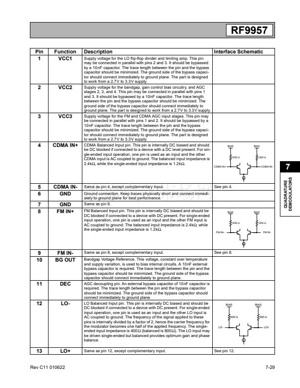 The RF9957 is an integrated complete IF AGC amplifier