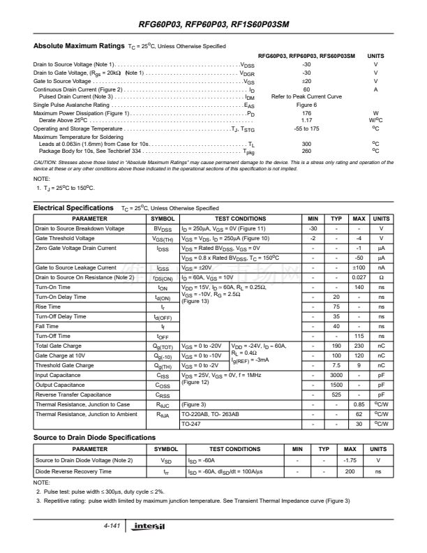 60A, 30V, 0.027 Ohm, P-Channel Power