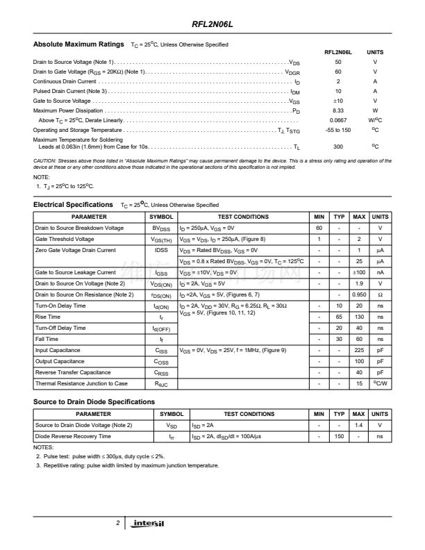 The RFL2N06L N-channel enhancement mode silicon gate