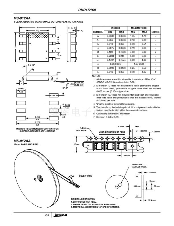 and reel, add the suffix 96 to the part number, i.e. RHR1K16096.