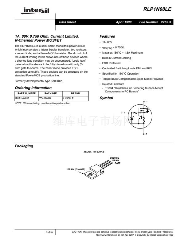 CAUTION: These devices are sensitive to electrostatic discharge; follow proper ESD Handling Procedures.