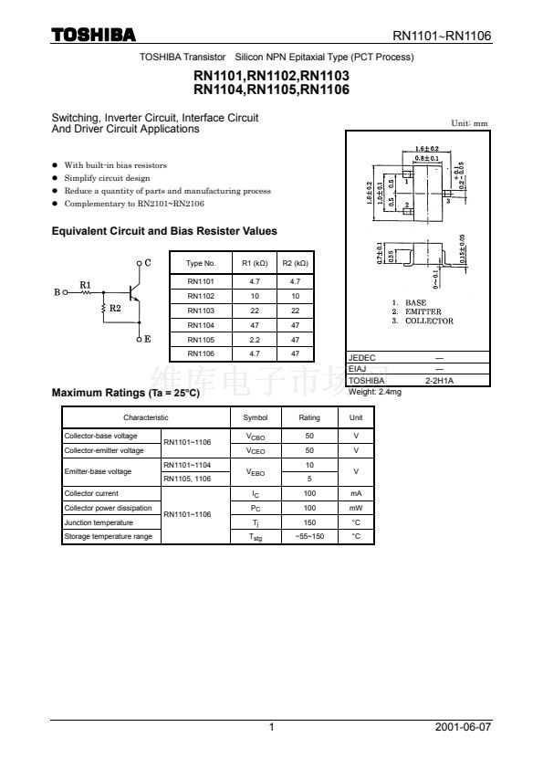 TOSHIBA Transistor Silicon NPN Epitaxial Type (PCT Process)