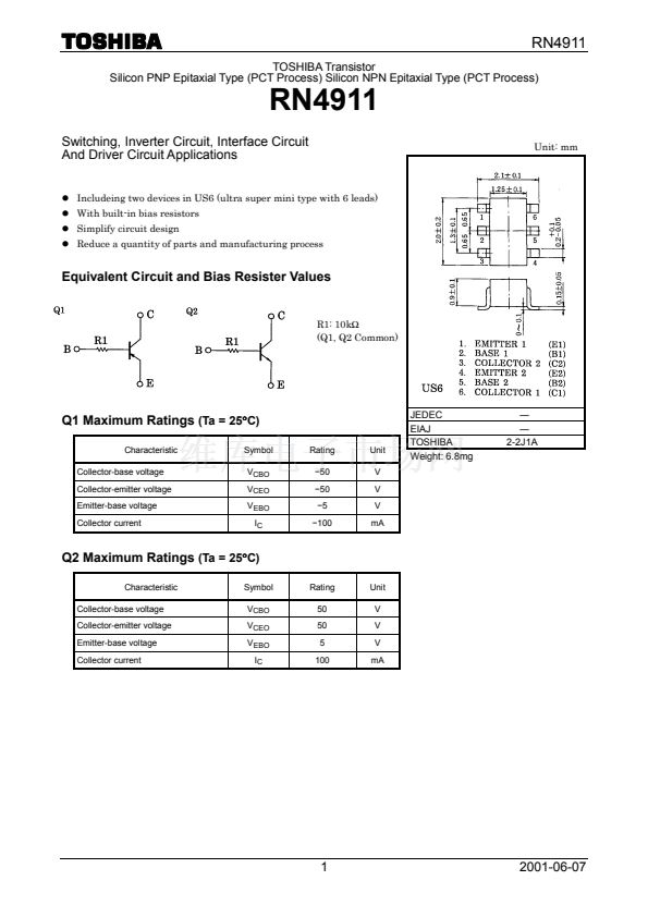 Includeing two devices in US6 (ultra super mini type with 6 leads)