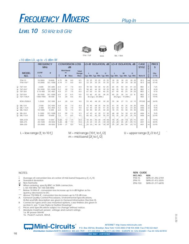 +10 dBm LO, up to +5 dBm RF