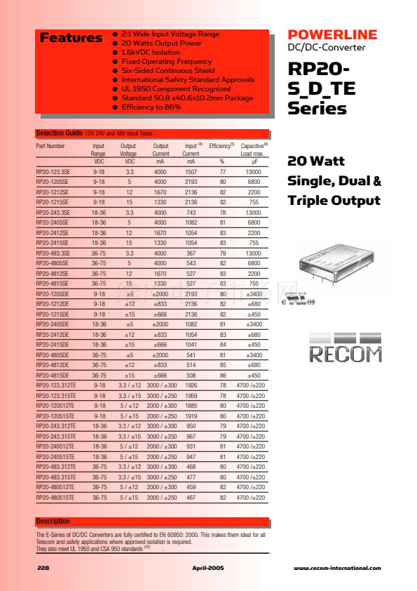The E-Series of DC/DC Converters are fully certified to EN 60950: 2000. This makes them ideal for all