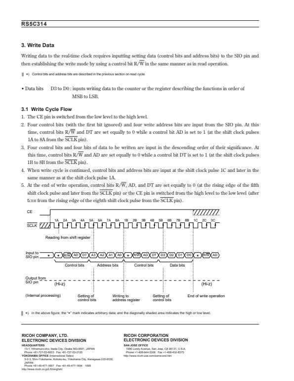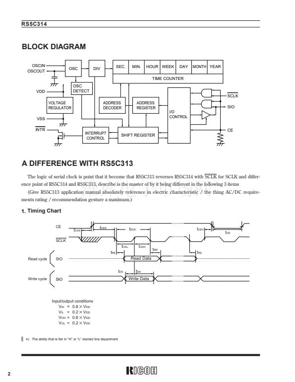 The RS5C314 is a CMOS type real-time clock which is connected to the CPU via three signal lines and capable of