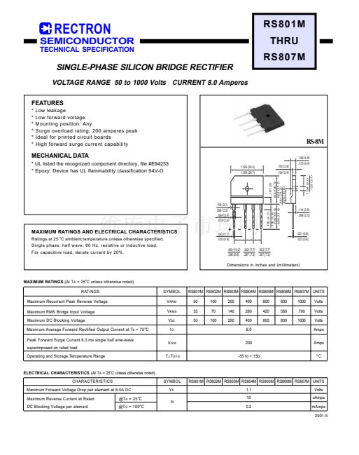 RS801M RS802M RS803M RS804M RS805M RS806M RS807M UNITS
