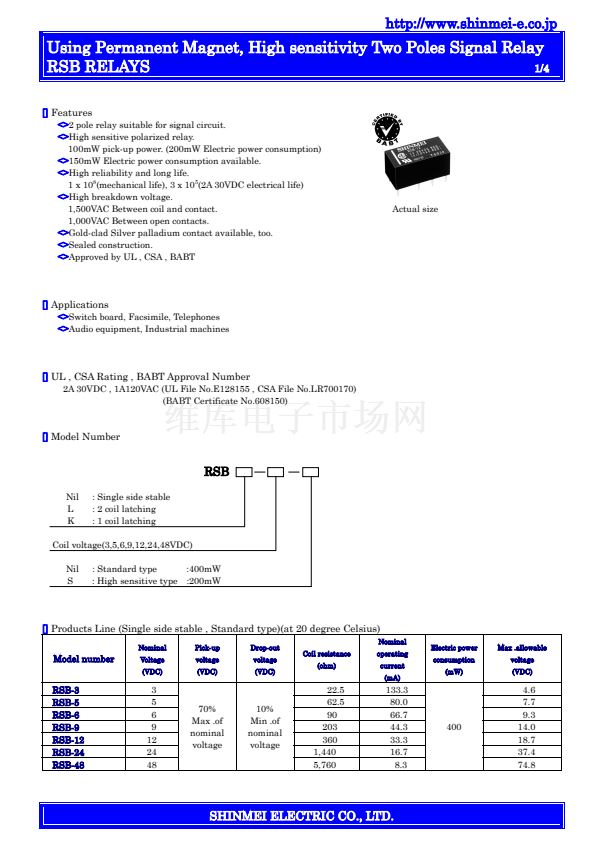 2A 30VDC , 1A120VAC (UL File No.E128155 , CSA File No.LR700170)