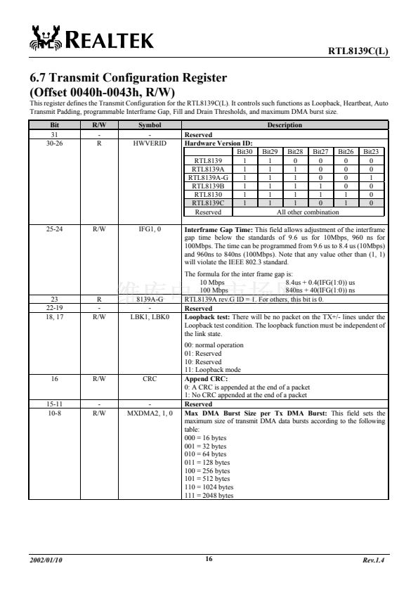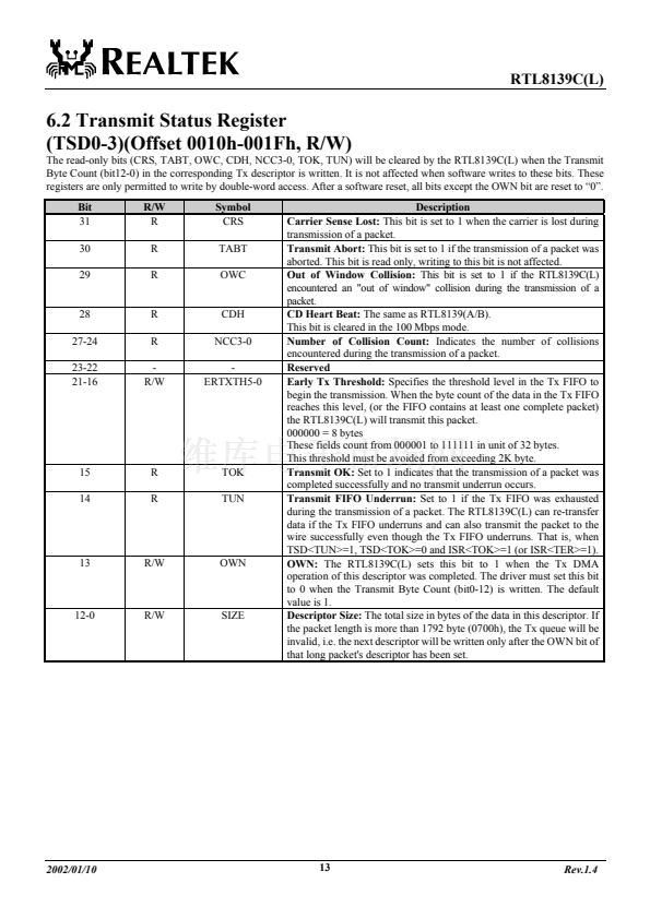 6.17 Transmit Status of All Descriptors (TSAD) Register......... 25