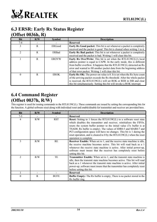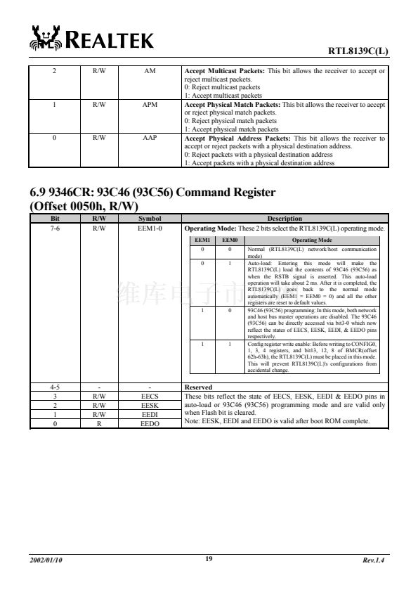 6.9 9346CR: 93C46 (93C56) Command Register ......... 19