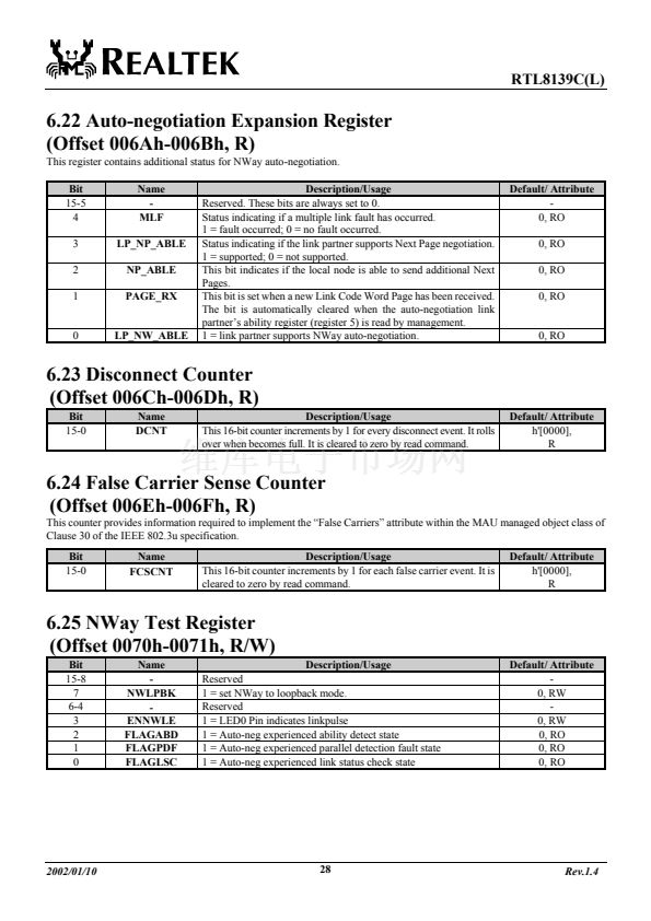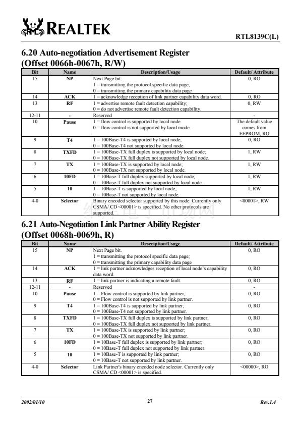 6.21 Auto-Negotiation Link Partner Ability Register............... 27
