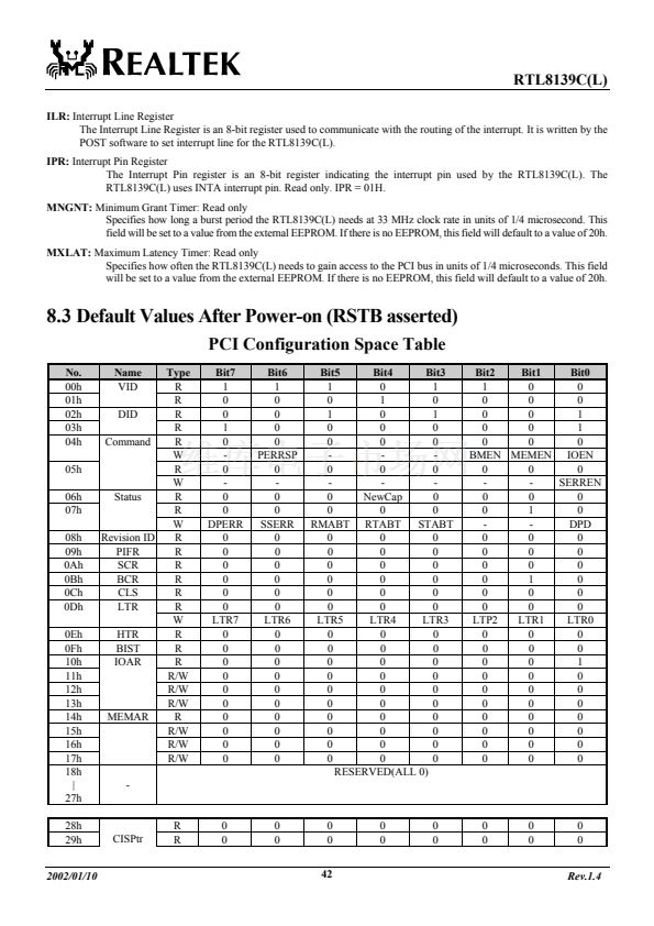 8.3 Default Values After Power-on (RSTB asserted)...... 42