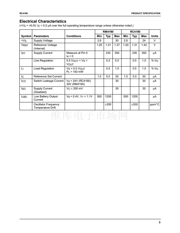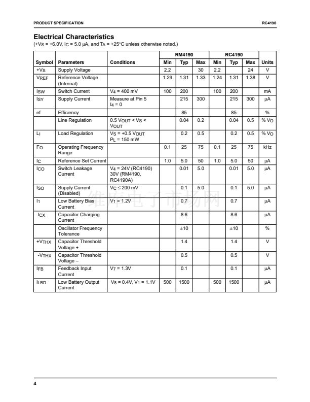 RC4190 has a 5.0% maximum output voltage tolerance,