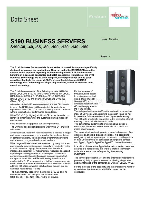 handling of e-business application and batch processing. Highlights of the S190