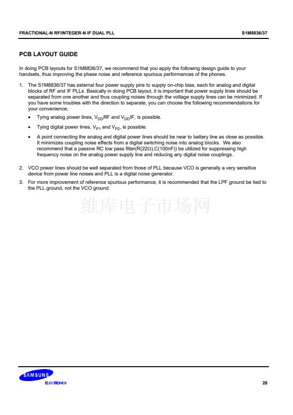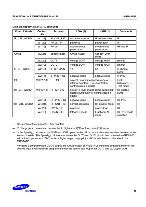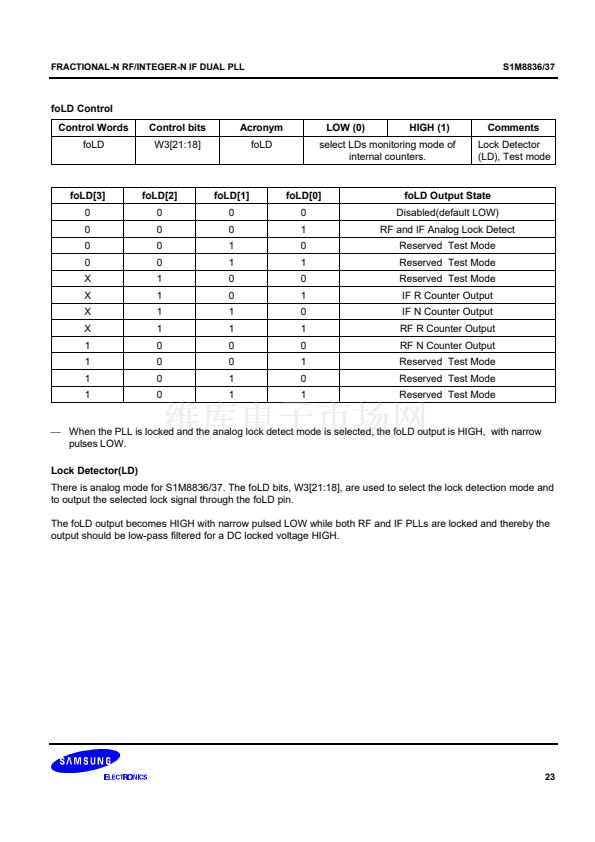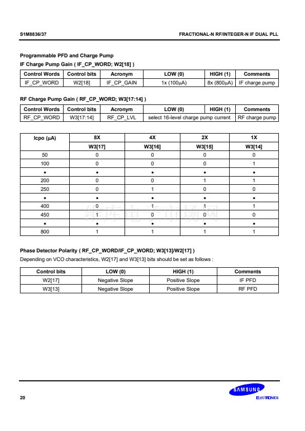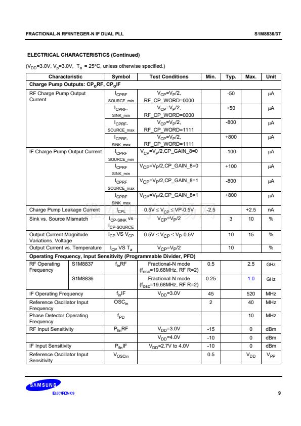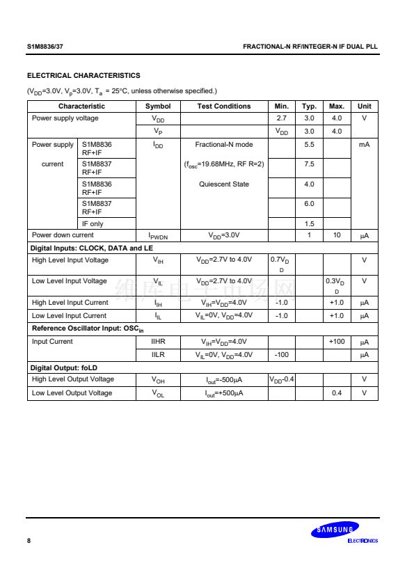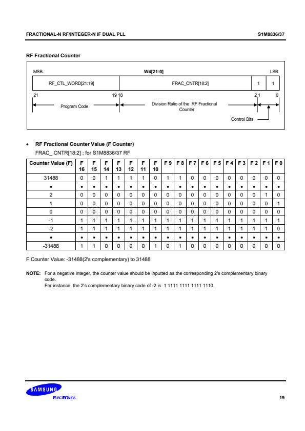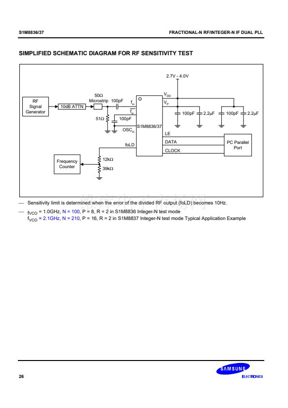 synthesizer adopts an 8/9/12/13 prescaler(16/17/20/21 for the S1M8837) and the IF synthesizer adopts an 8/9