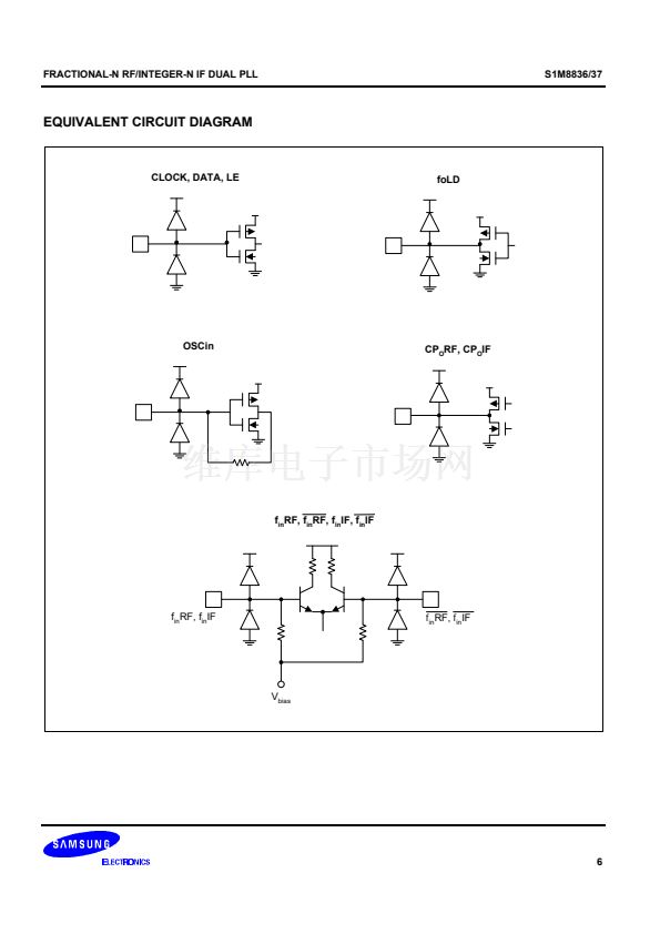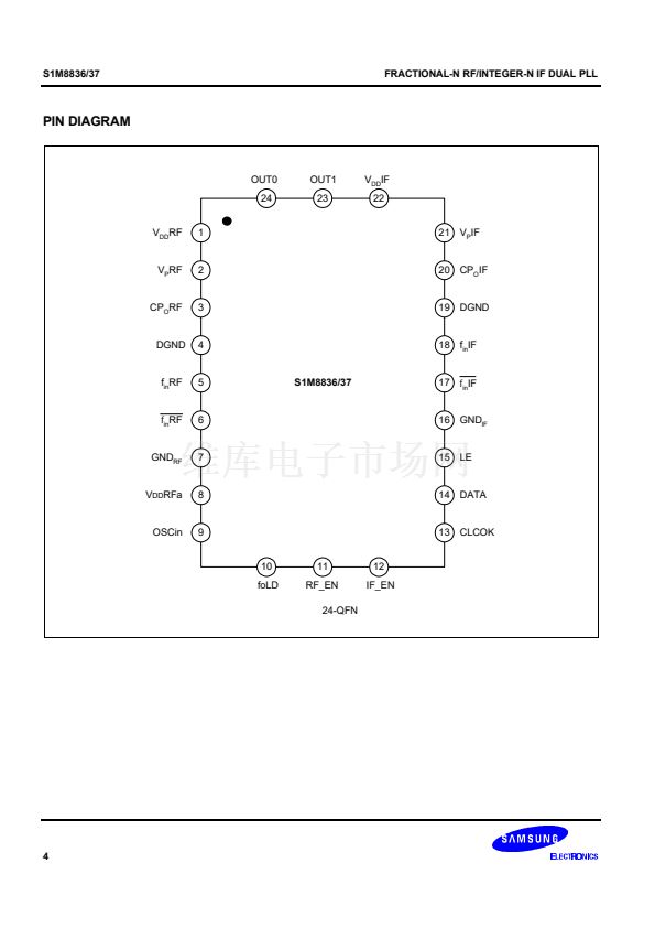 The S1M8836/37 contains quadruple-modulus prescalers. The S1M8836 RF