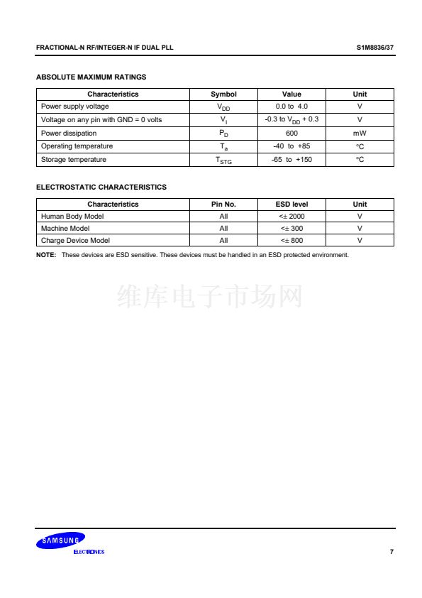 Using the Samsung's proprietary digital phase-locked-loop technique, the S1M8836/37 has a linear phase