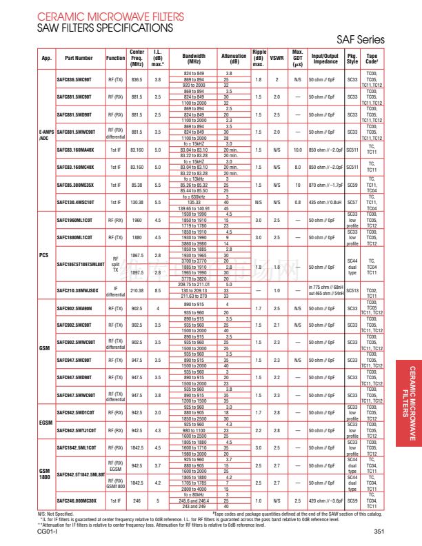 • CERAMIC MICROWAVE FILTERS SAW FILTERS