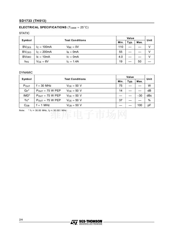 The SD1733 is a 50 V Class AB epitaxial silicon