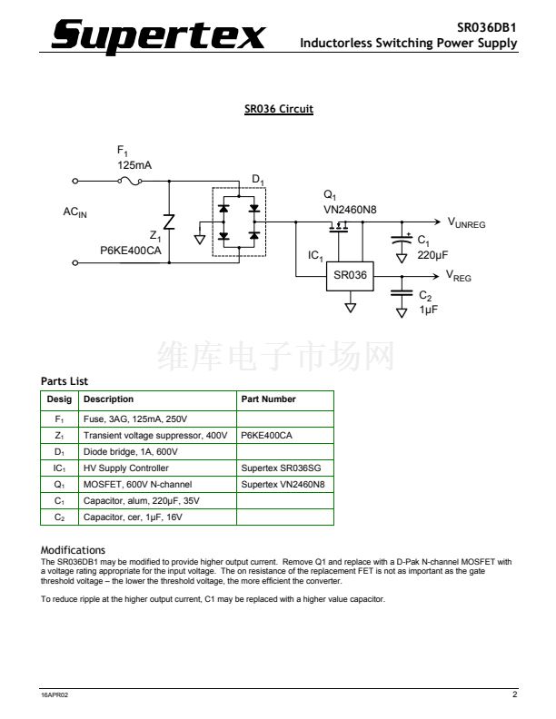 The Supertex SR036 is an inductorless, dual output off-line