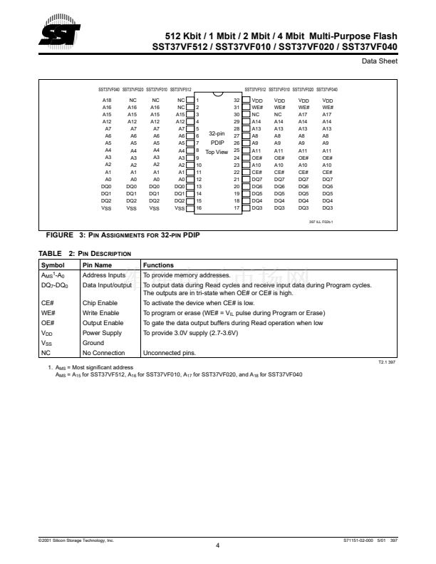 SST37VF512 / SST37VF010 / SST37VF020 / SST37VF040