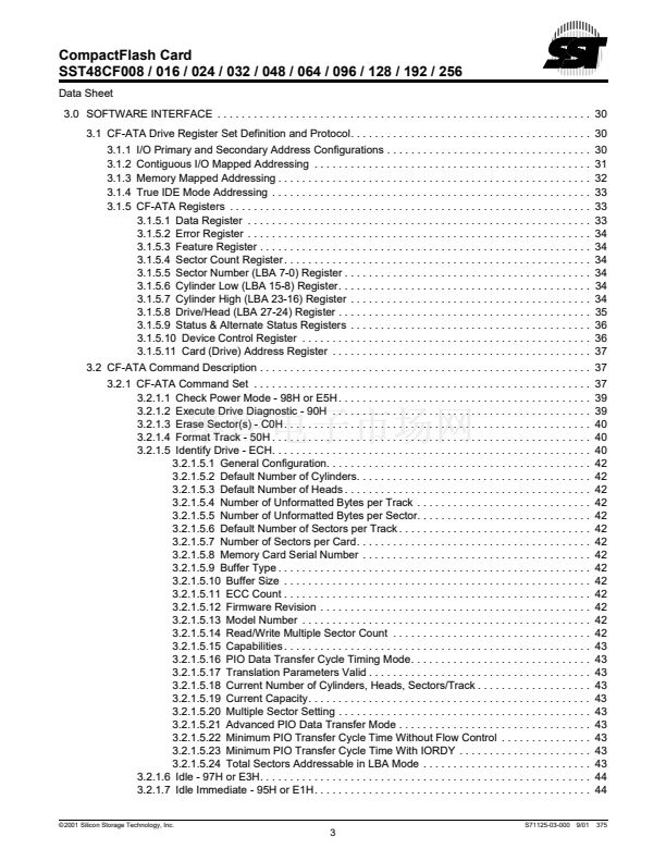 SST48CFxxxATA/IDE Standard CompactFlash Card