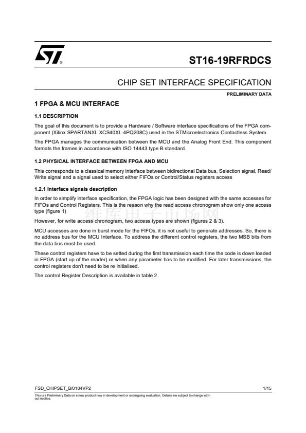 CHIP SET INTERFACE SPECIFICATION