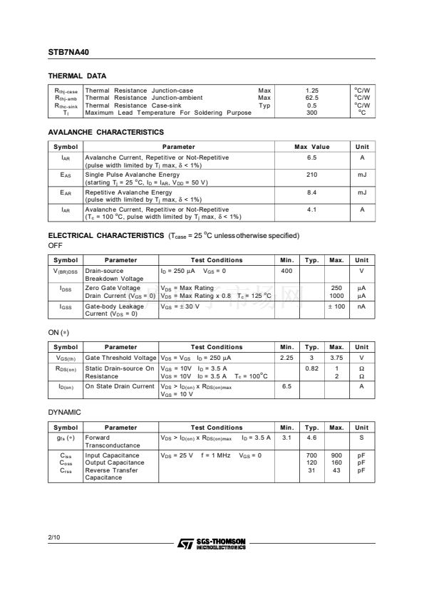 STB7NA40 Datasheet